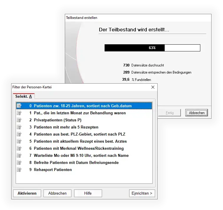 Das Selektions-Modul ist ein sehr umfangreiches Feature von THEORG. Mit Selektionen erhalten Sie Teilmengen des Gesamtbestandes in allen Karteien, egal ob Ärzte, Interessenten oder Rezepte. Diese Teilmengen können im Anschluss noch manuell bearbeitet werden.