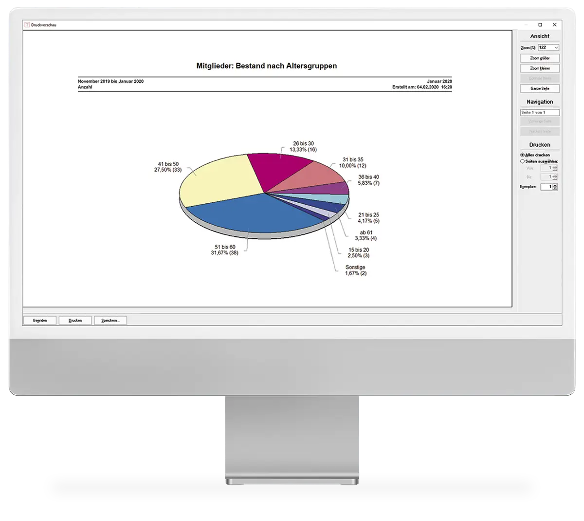 Die Teilbestände können als Liste gedruckt, für Serienbriefe genutzt oder über eine Schnittstelle in andere Programme exportiert werden.