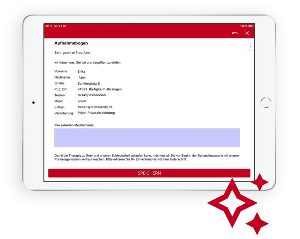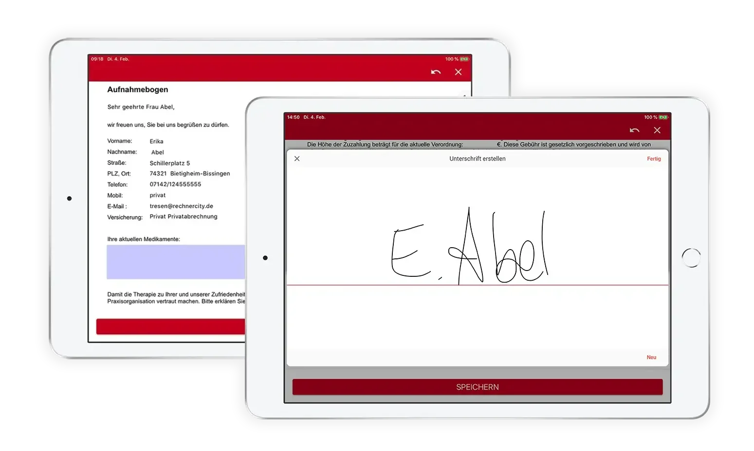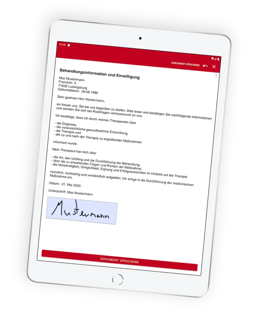 Mit dem digitalen Klemmbrett lassen Physiotherapeuten, Ergotherapeuten und Logopäden alle bisher papierbasierten Dokumente und Formulare direkt auf dem Tablet ausfüllen und unterschreiben – digital, einfach und schnell.